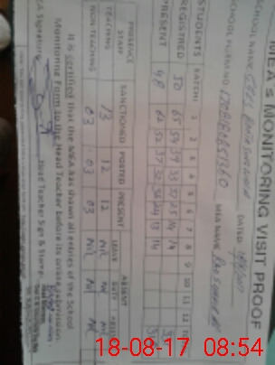 | Attendance Register | Head Teacher | MEA with School | Visit Proof |