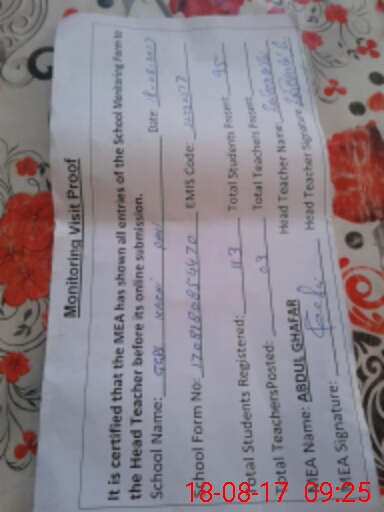 | Certified that this School was Inspected by the Undersigned MEA/DMO Today and the Information Stated Above is as Per Record. | |||||