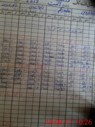 | CNIC | Full Name | Designation | R/C | Absence During Last Calender Month |