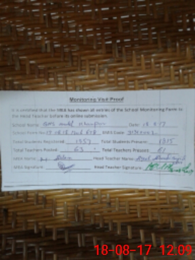 | Certified that this School was Inspected by the Undersigned MEA/DMO Today and the Information Stated Above is as Per Record. | |||||