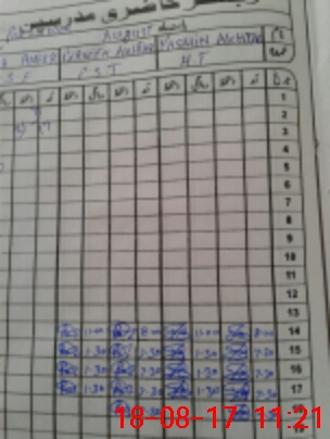 | CNIC | Full Name | Designation | R/C | Absence During Last Calender Month |