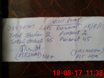 | Attendance Register | Head Teacher | MEA with School | Visit Proof |