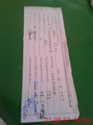 | Attendance Register | Head Teacher | MEA with School | Visit Proof |