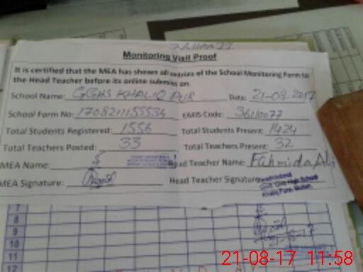| Certified that this School was Inspected by the Undersigned MEA/DMO Today and the Information Stated Above is as Per Record. | |||||