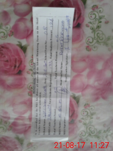 | Attendance Register | Head Teacher | MEA with School | Visit Proof |