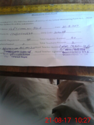 | Total no. of Classrooms: 2 No. of Classrooms Used for Teaching: 2 No. of Classrooms Storing Old Furniture, FTBs, etc: 0Comments if Any: BATH ROOMS ARE MADE ON SELF BASES BOUNDARY WALL PARTIALLY MADE |