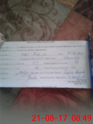 | Monitoring Date: 21-08-2017 | Start Time: 21-08-2017 08:27 AM | End Time: 21-08-2017 08:56 AM | Name of MEA: Na**** Kh**** (R**** | |