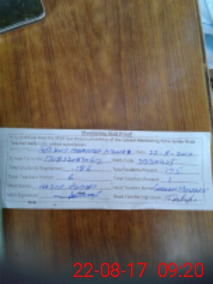 | Monitoring Date: 22-08-2017 | Start Time: 22-08-2017 08:30 AM | End Time: 22-08-2017 09:20 AM | Name of MEA: NA**** AH**** (R**** | |