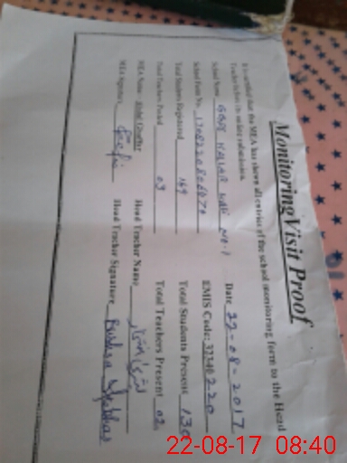 | Certified that this School was Inspected by the Undersigned MEA/DMO Today and the Information Stated Above is as Per Record. | |||||