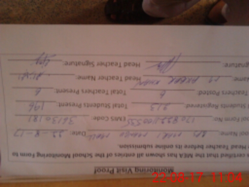 | Attendance Register | Head Teacher | MEA with School | Visit Proof |