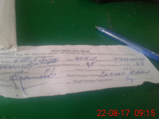 | Attendance Register | Head Teacher | MEA with School | Visit Proof |