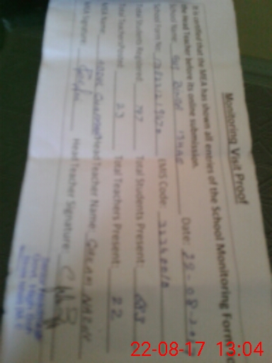 | Certified that this School was Inspected by the Undersigned MEA/DMO Today and the Information Stated Above is as Per Record. | |||||