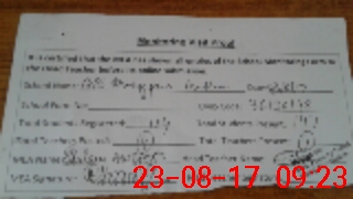 | Monitoring Date: 23-08-2017 | Start Time: 23-08-2017 08:55 AM | End Time: 23-08-2017 09:24 AM | Name of MEA: GH**** MU**** | |