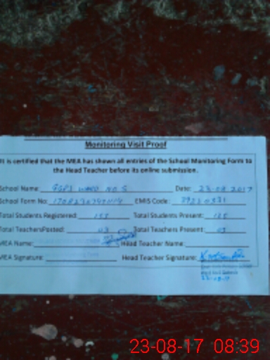 | Certified that this School was Inspected by the Undersigned MEA/DMO Today and the Information Stated Above is as Per Record. | |||||