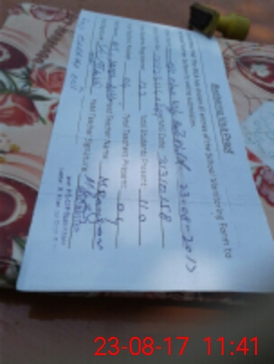 | School Visited by School Health & Nutrition Supervisor (No. of Visits) | 1 | Name1: | Samee Ullah | Name2: | Nil |