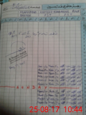 | CNIC | Full Name | Designation | R/C | Absence During Last Calender Month |