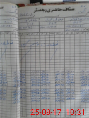| CNIC | Full Name | Designation | R/C | Absence During Last Calender Month |