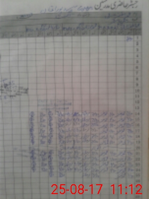 | CNIC | Full Name | Designation | R/C | Absence During Last Calender Month |