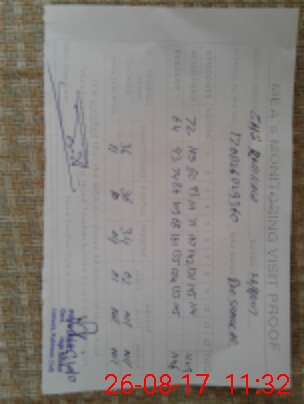 | Monitoring Date: 26-08-2017 | Start Time: 26-08-2017 10:15 AM | End Time: 26-08-2017 11:36 AM | Name of MEA: Ra**** Sh**** Al**** ex**** | |