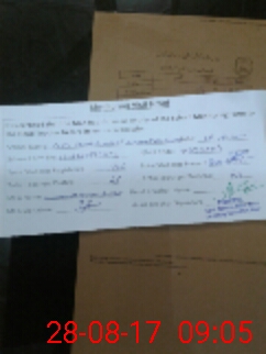 | Monitoring Date: 28-08-2017 | Start Time: 28-08-2017 08:05 AM | End Time: 28-08-2017 09:07 AM | Name of MEA: Mu**** Ak**** | |