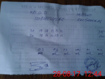 | Attendance Register | Head Teacher | MEA with School | Visit Proof |