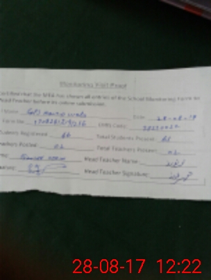 | Attendance Register | Head Teacher | MEA with School | Visit Proof |