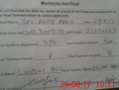 | Attendance Register | Head Teacher | MEA with School | Visit Proof |