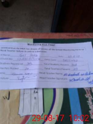 | Attendance Register | Head Teacher | MEA with School | Visit Proof |