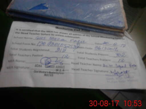 | Attendance Register | Head Teacher | MEA with School | Visit Proof |