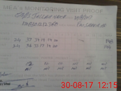 | Attendance Register | Head Teacher | MEA with School | Visit Proof |