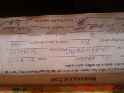| Attendance Register | Head Teacher | MEA with School | Visit Proof |