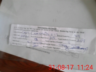 | Attendance Register | Head Teacher | MEA with School | Visit Proof |