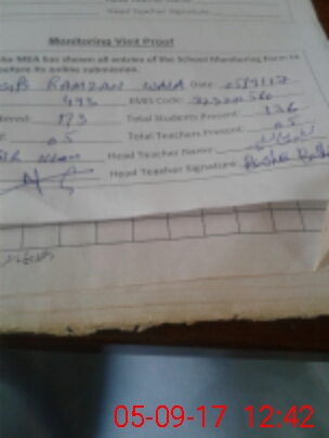 | Attendance Register | Head Teacher | MEA with School | Visit Proof |
