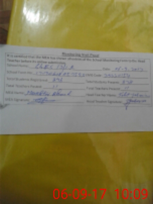 | Monitoring Date: 06-09-2017 | Start Time: 06-09-2017 08:57 AM | End Time: 06-09-2017 10:15 AM | Name of MEA: MU**** AH**** (R**** | |