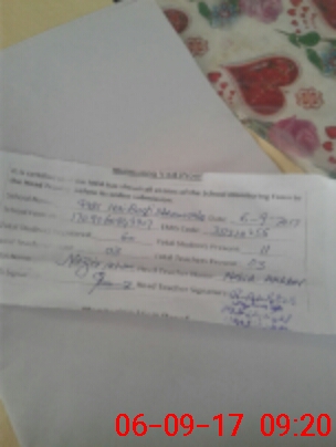 | Name: Me**** Fa**** Designation: (School Headmaster's/Headmistress's) PST Phone/Cell Number: 03**** |