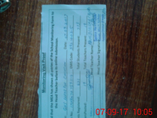 | Attendance Register | Head Teacher | MEA with School | Visit Proof |