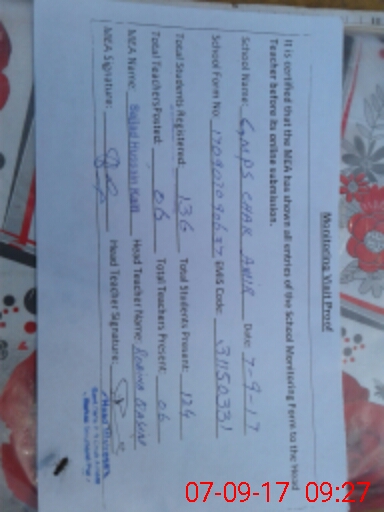 | Certified that this School was Inspected by the Undersigned MEA/DMO Today and the Information Stated Above is as Per Record. | |||||