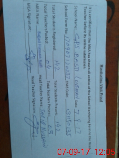 | Name: Mu**** Sh**** Designation: (School Headmaster's/Headmistress's) PST Phone/Cell Number: 03**** |