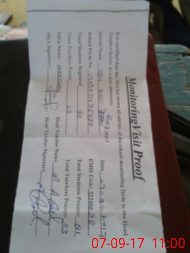 | Certified that this School was Inspected by the Undersigned MEA/DMO Today and the Information Stated Above is as Per Record. | |||||