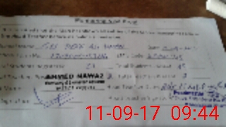 | Monitoring Date: 11-09-2017 | Start Time: 11-09-2017 09:31 AM | End Time: 11-09-2017 09:44 AM | Name of MEA: AH**** NA**** (r**** | |