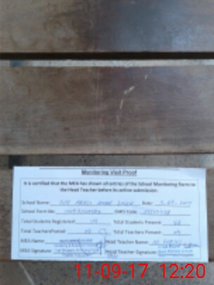 | Attendance Register | Head Teacher | MEA with School | Visit Proof |