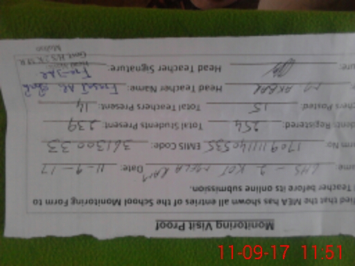 | Certified that this School was Inspected by the Undersigned MEA/DMO Today and the Information Stated Above is as Per Record. | |||||