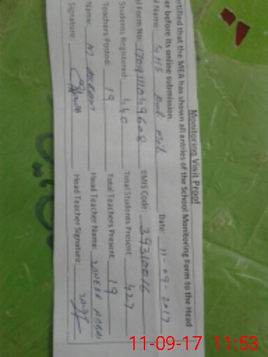 | Attendance Register | Head Teacher | MEA with School | Visit Proof |