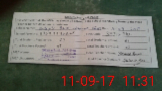 | Monitoring Date: 11-09-2017 | Start Time: 11-09-2017 11:00 AM | End Time: 11-09-2017 11:45 AM | Name of MEA: SH**** AL**** ZI**** (R**** | |