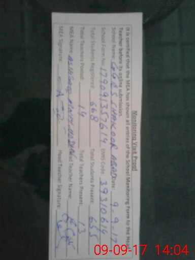 | Attendance Register | Head Teacher | MEA with School | Visit Proof |