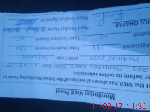| Certified that this School was Inspected by the Undersigned MEA/DMO Today and the Information Stated Above is as Per Record. | |||||