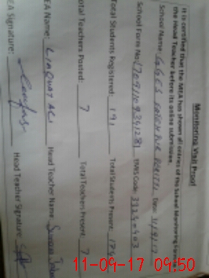| Attendance Register | Head Teacher | MEA with School | Visit Proof |