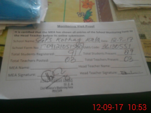 | EMIS Code: 36130551 | Name of School: GGPS KOTHAY WALA | |||
