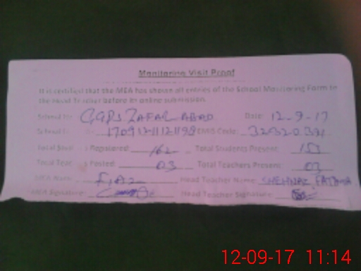 | EMIS Code: 32320391 | Name of School: GGPS ZAFFAR ABAD | |||