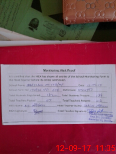 | Attendance Register | Head Teacher | MEA with School | Visit Proof |